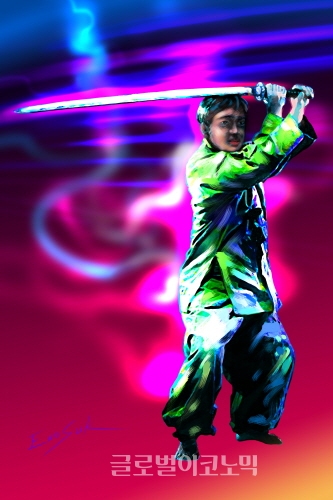 검룡도 이겼다는 자신감이 괴력을 부른다. 칼빛을 타고 달에 오르고 싶다. 손오공처럼 기를 타고 천하를 제패하는 것은 대장부의 당연한 기개가 아닌가! 야생의 날카로운 이빨을 갈다.