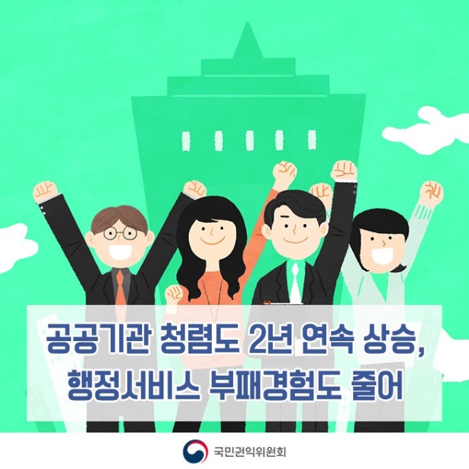 부패경험률도 지속적으로 낮아지는 추세다. 외부평가 설문에 응답한 국민중 0.7%(1020명)가 공공기관 행정서비스를 받으면서 금품·향응·편의를 제공하거나 요구받은 경험이 있다고 답했다. 이는 전년 대비 0.3%p 낮아진 것이다.