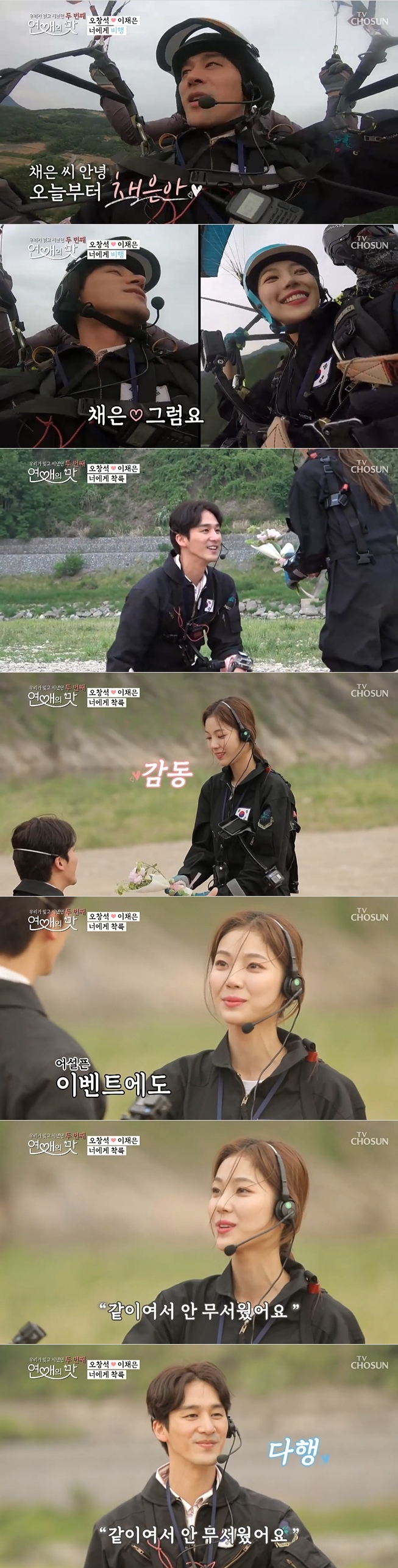 이미지 확대보기20일 밤 방송된 TV 조선 '우리가 잊고 지냈던 두 번째 연애의 맛'(이하 '연애의 맛')에서는 탤런트 오창석과 이채은 커플이 패러글라이딩을 타며 달달한 데이트를 이어갔다.