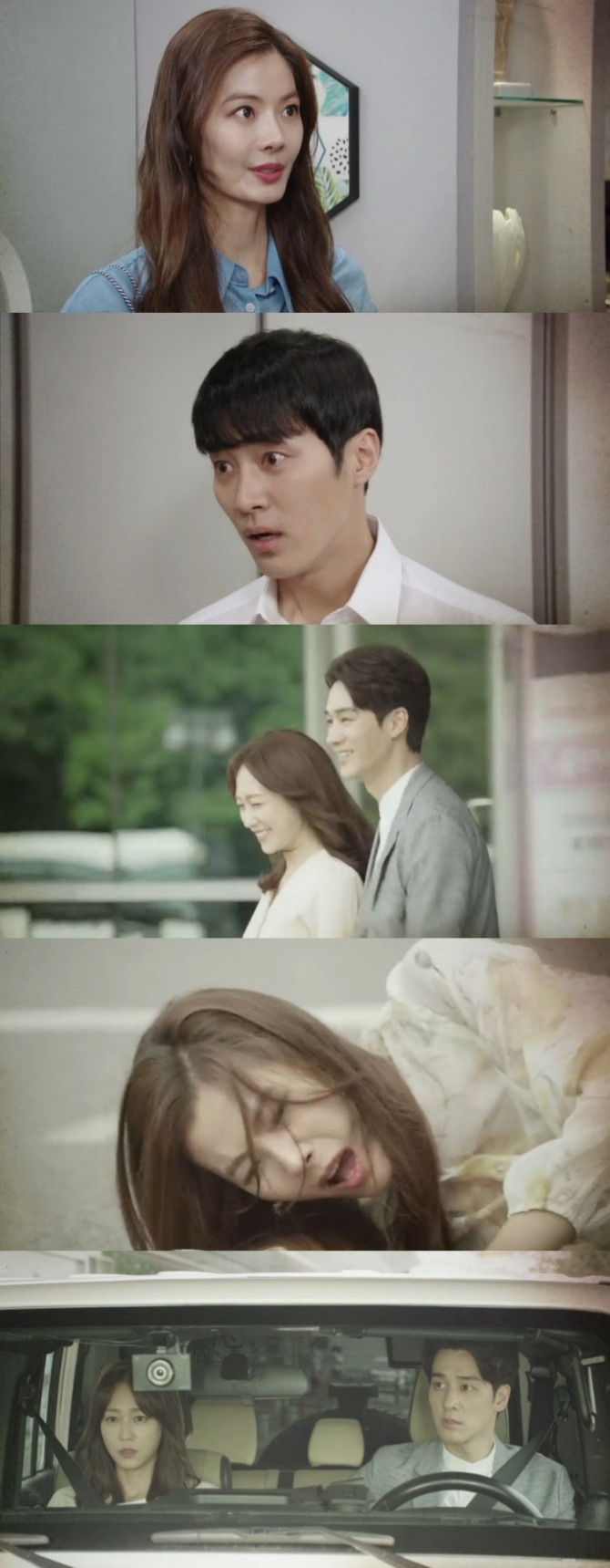 길바닥에 쓰러진 시월을 본 오태양이 도와주려고 차에서 내리려고 하자 채덕실은 "그냥 가"라며 태양의 길을 막는다.