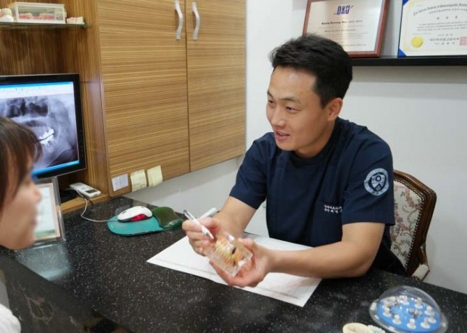 임플란트 부작용을 낮추고 오랫동안 사용하기 위해 최근 맞춤형 보철물들이 많이 사용되고 있다. 춘천 연세바른치과 배병룡 대표원장. 사진=춘천 연세바른치과이미지 확대보기