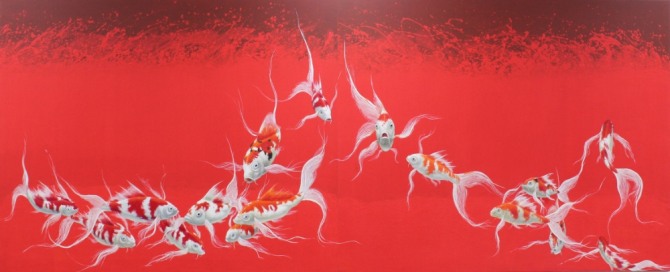 지난해까지 작가는 움직임, 지느러미, 눈 등에 있어 실제 잉어와 최대한 흡사하게 그렸다. 더 강한 기운을 담고 싶었던 작가는 긴 수염, 천사 같은 날개가 달린 새로운 지느러미의 잉어를 창조한다. 선적인 요소들로 드로잉 함으로써 꿈틀거리는 잉어의 힘 있는 움직임을 강조한다. 움직임의 조화는 인간에게 이로운 기운이 가도록 잉어에 힘을 불어넣는다. 잉어의 눈은 사람의 눈처럼 흰자와 눈동자가 또렷해 놀람, 성냄, 애정까지의 감정을 담고 있다. 숱한 드로잉을 캔버스에 옮긴 끝에 운기 생동하는 잉어가 탄생된 것이다. 현실에는 없는 작가만의 잉어이다.
