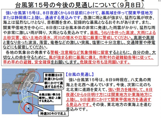 일본 기상청 태풍 제 15 호 화사이 특보
