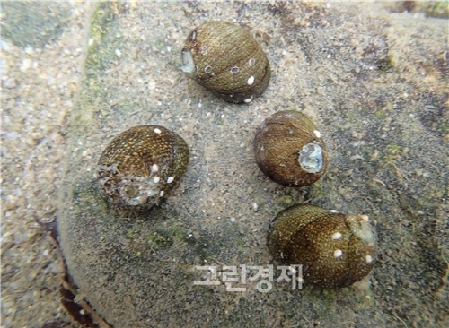 이미지 확대보기이번에 확인된 왕피천 하류에는 기수갈고둥 약 4000개체와 약 1만개 이상의 알주머니가 발견됐다.