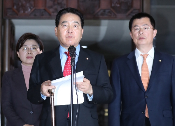 또 문재인 대통령을 향해 심 원내대표는 "위헌이고 처리 불법인 법안에 대해 문 대통령이 거부권을 행사하는 거 당연하다"며 "권력의 시녀 의장은 민주당 뜻에 따라 법안을 즉각 이송할 것이다. 대통령은 즉각 거부해야 한다"고 말했다.