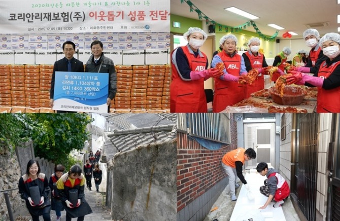 이미지 확대보기7일 보험업계에 따르면 코리안리재보험 임직원 봉사단은 지난 5일 서울 종로구 이화동을 찾아 저소득층 가정과 지역아동센터를 방문, 쌀과 김치, 라면류 등 생필품을 전달했다. 코리안리는 2004년 종로구 이화동과 1사1동 협약을 통해 인연을 맺은 후 16년째 이곳을 찾아 따뜻한 마음을 전하고 있다.