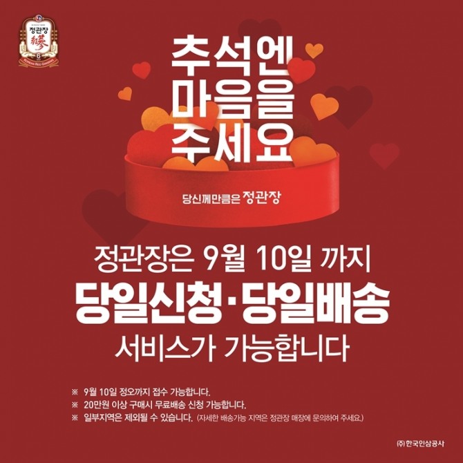 KGC인삼공사는 이번 추석 기간에 ‘추석엔 마음을 주세요’ 행사를 전국 정관장 매장에서 9월 16일까지 진행한다.
