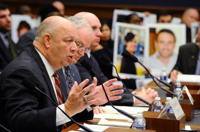 스티브 딕슨 FAA 청장(맨 왼쪽)이 11일(현지시간) 미 하원 교통·인프라위원회에 출석해 보잉 737 맥스 기종과 관련한 질문에 답변하고 있다. 사진=로이터