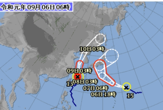 제주도는 6일 오후, 남부지방은 6일 밤, 중부지방은 7일 아침부터 13호 태풍 링링의 영향권에 들 전망이다.