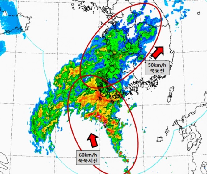 기상청은 9일 오후 발표한 오늘 내일 날씨와 미세먼지 일기예보에서 북태평양고기압이 확장하면서 대륙고기압과 만나 만들어진 정체전선이 중부지방에 위치하면서 모레(11일)까지 우리나라에 영향을 주겠고, 특히, 대륙고기압에서 차고 건조한 공기가 유입되고, 북태평양고기압으로부터는 따뜻하고 습한 공기가 유입되면서 불안정이 매우 커져 중부지방을 중심으로 내일 새벽(00~06시), 내일 오후(15시)부터 모레 아침(09시) 사이에 시간당 50mm 이상의 매우 강한 비와 매우 많은 비가 내리는 곳이 있겠다면서 비 피해가 없도록 각별히 유의를 당부했다.