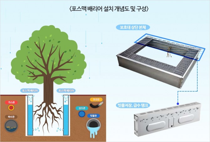 제품 연구개발을 진행해온 고광호 포스코 강건재솔루션그룹 과장은 "포스맥 배리어가 물 부족에 따른 가로수 뿌리의 솟구침을 억제하고 저장한 빗물을 재활용해 뿌리에 수분을 공급해 도심 가로수 생육을 도울 수 있는 친환경 솔루션”이라고 설명했다.