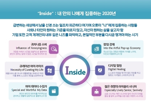 INSIDE는 ▲귀차니즘 소비(I) ▲라이프 큐레이션(N) ▲마이데이터 수집가(S) ▲팝업 경제(I) ▲디지털 힐링(D) ▲젊은 취향의 시니어(E)다.