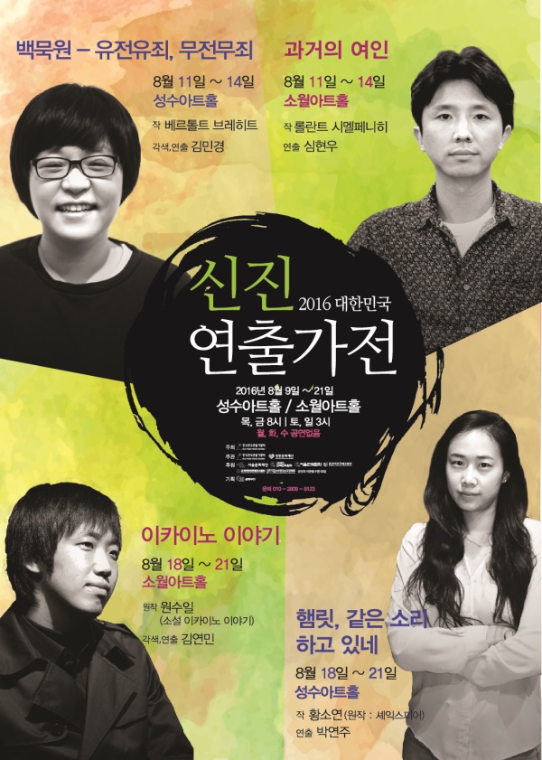한국연극연출가협회가 신진 연출가를 발굴할 목적으로 주최하는 '2016 대한민국 신진 연출가전'이 그것으로, 오는 8월 9∼21일 서울 성동구 성수아트홀과 소월아트홀에서 열린다.