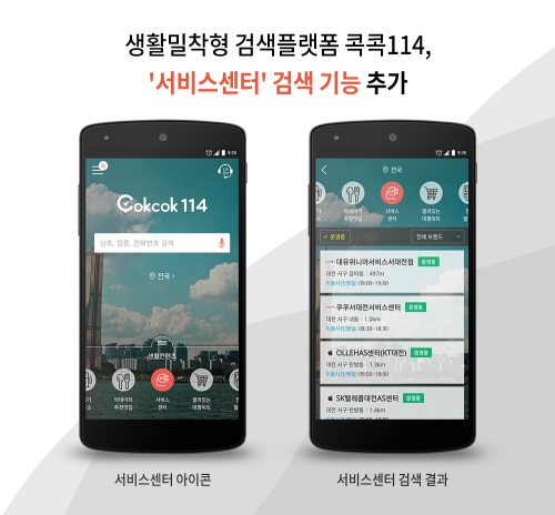 또 콕콕114에서는 병원 진료시간, 마트휴무일, 최저가 주유소, 빅데이터 추천맛집 등 다양한 생활밀착형 정보를 제공하고 있다.