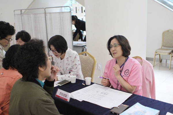 이미지 확대보기천사데이 무료건강검진 행사는 건강한 지역사회를 만들고자 한림대학교동탄성심병원 간호부에서 준비한 행사로 20여명의 수간호사(UM)들이 직접 방문객들에게 신체계측에서부터 혈압 및 혈당체크, MMSE치매검사, 체성분측정, 경동맥초음파, 심폐소생술교육과 건강상담을 진행했다.