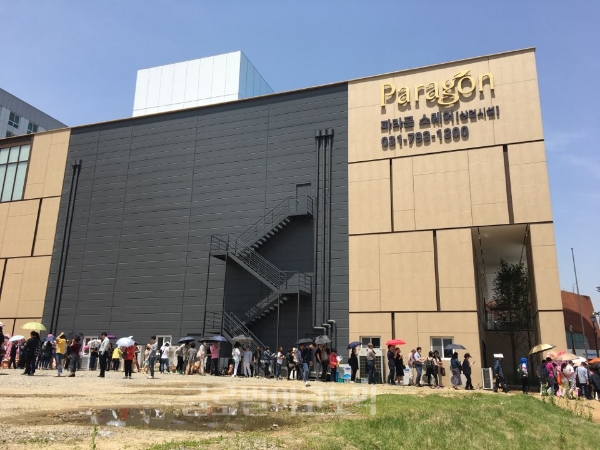 서울 강남구 자곡동 660번지에 마련된 하남 미사역 파라곤 견본주택에는 아침 일찍부터 긴 줄이 형성됐다. 동양건설산업 측은 대기시간 등을 고려해 당초 오전 11시로 정했던 견본주택 오픈시간을 오전 9시로 당겼다.