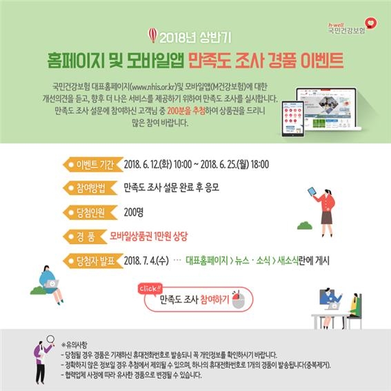 이미지 확대보기11일 국민건강보험공단은 오는 12일부터 25일까지 홈페이지 및 모바일앱 만족도 조사를 실시 한다고 밝혔다.