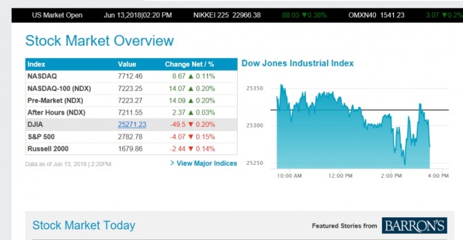 미국 뉴욕증시 현지시간 Data as of Jun 13, 2018 | 2:20PM
