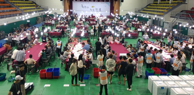 세종시 연서면 세종시민체육관에서 개표하는 모습