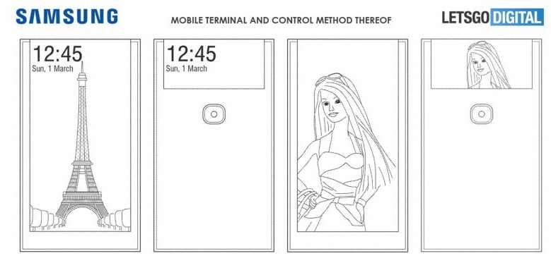 이 특허는 플렉시블 디스플레이를 사용해 스마트폰 뒷면에도 셀카용 디스플레이를 적용하는 것이 주된 내용이다.