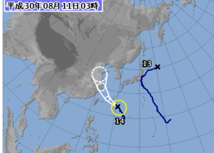 기상청 예상 강수량은 14일 낮(09시)부터 밤(24시)까지 제주도, 북한: 5~30mm, 14일 오후(15시)부터 밤(21시)까지 전남, 경남: 5mm 내외이다.