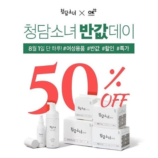 해당 제품은 청담소녀 생리대 4종으로 오버나이트, 대형, 중형, 롱라이너 등 위생 용품과 클렌저와 미스트가 대상이다.