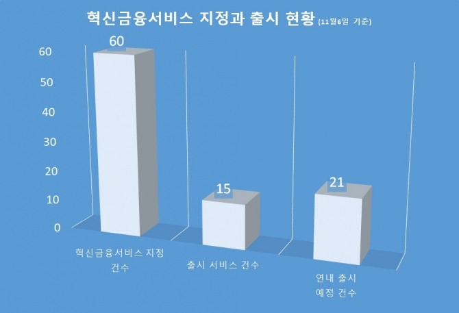 금융업계는 지정 서비스 60건 중 15건만 서비스가 이뤄지는 것을 두고 혁신금융서비스 준비가 미흡했던 것 아니냐는 지적이 나온다.