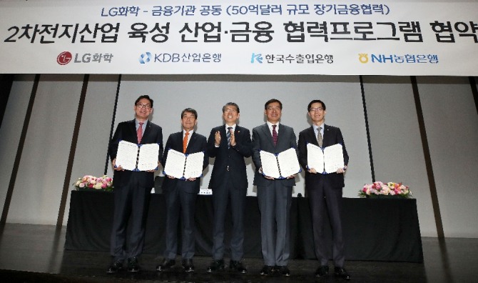 금융권은 앞으로 LG화학의 2차전지 사업 관련 글로벌 생산시설 투자 필요자금 중 50억 달러를 향후 2020년부터 2024년까지 5년 동안 필요시 신속 지원하기로 했다. 또한 산은과 LG화학은 각각 900억 원, 600억 원 등 총 1500억 원을 공동 펀드형태로 조성해 2차전지 협력업체에 지원한다는 계획이다.