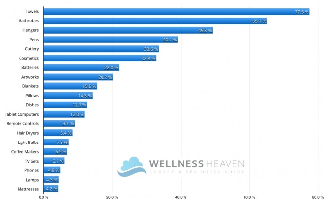 글로벌 호텔평가업체 웰니스헤븐이 조사한 전세계 고급호텔의 도난품 순위. 사진=웰니스헤븐