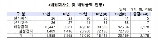 한편 올해 중간·분기배당 제도를 도입한 기업은 1093개로 전년보다 55개 증가했다.