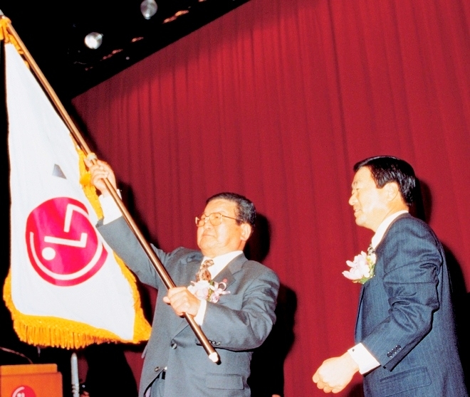 구 명예회장은 70세이던 1995년 세대교체를 선언하며 장남 구본무 회장에게 그룹 경영권을 넘겼다. 구본무 회장은 50세에 LG그룹 회장이 됐다. 당시 구 명예회장은 1995년 1월 럭키금성그룹 사명을 LG그룹으로 바꾸었다.