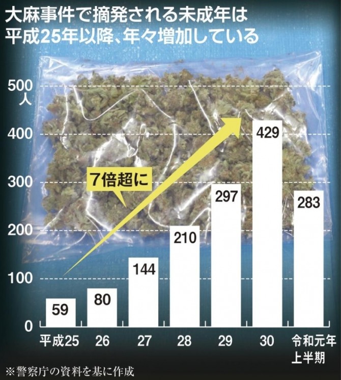 대마초 구입 경로는, 45%는 밀매인으로부터 구입하고 있었으며, 최근의 적발에서는 SNS를 통해 밀매인과 접촉하는 경우가 눈에 띄게 늘었다. 또, 60%는 1그램(g)에 5000엔(약 5만5000원) 이하에서 대마초를 구입하는 등 비교적 입수하기 쉬운 가격인 점도 일본 미성년에 대한 대마초 침투에 영향을 주고 있는 것으로 보인다.
