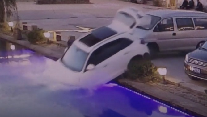 이미지 확대보기16일 중국 국영방송 CCTV의 영어채널인 CGTN에 따르면 지난 10일 중국 저장성의 한 주민이 시동을 끄지 않고 자신의 승용차를 연못가에 주차하고 뒷 트렁크로 향하는 사이 함께 동승했던 애완견이 기어를 변속하는 바람에 차가 발진해 연못에 빠지는 사고가 일어났다.