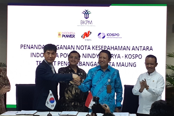 외신에 따르면 이날 인도네시아 수도 자카르타에 있는 인도네시아 투자조정청(BKPM) 청사에서 남부발전 민병희 부사장, 바흘릴 라하달리아 BKPM 청장, 하에다르 카림 닌디아카르야 사업본부장, 아흐신 시드퀴 인도네시아파워 사업본부장 등이 참석한 가운데 '마웅 수력발전소 사업을 위한 양해각서' 체결식'이 열렸다.