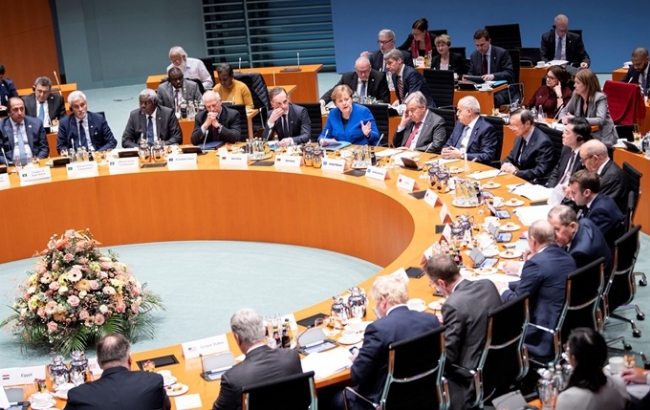 19일의 회의에는 잠정정권을 지원하는 터키의 에르도안 대통령, LNA를 지지하는 러시아의 푸틴 대통령 외 폼페이오 미국 국무장관, 존슨 영국 총리, 마크롱 프랑스 대통령, 유엔의 구테흐스 사무총장 등이 참가했다. 리비아를 둘러싸고 지난 12일 터키와 러시아가 정전을 중개했지만 하프탈 사령관은 13일 모스크바에서 진행된 협상에서 정전 합의에 대한 서명을 거부했다.