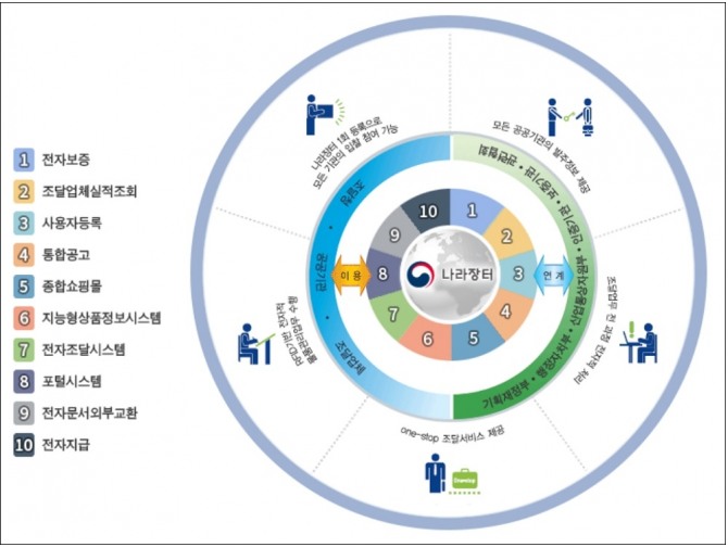 이미지 확대보기나라장터는 조달업무 전 과정을 온라인으로 처리하는 범정부 전자조달 플랫폼으로, 전체 공공조달 거래의 73%(2018년 기준)가 나라장터를 통해 이뤄진다.