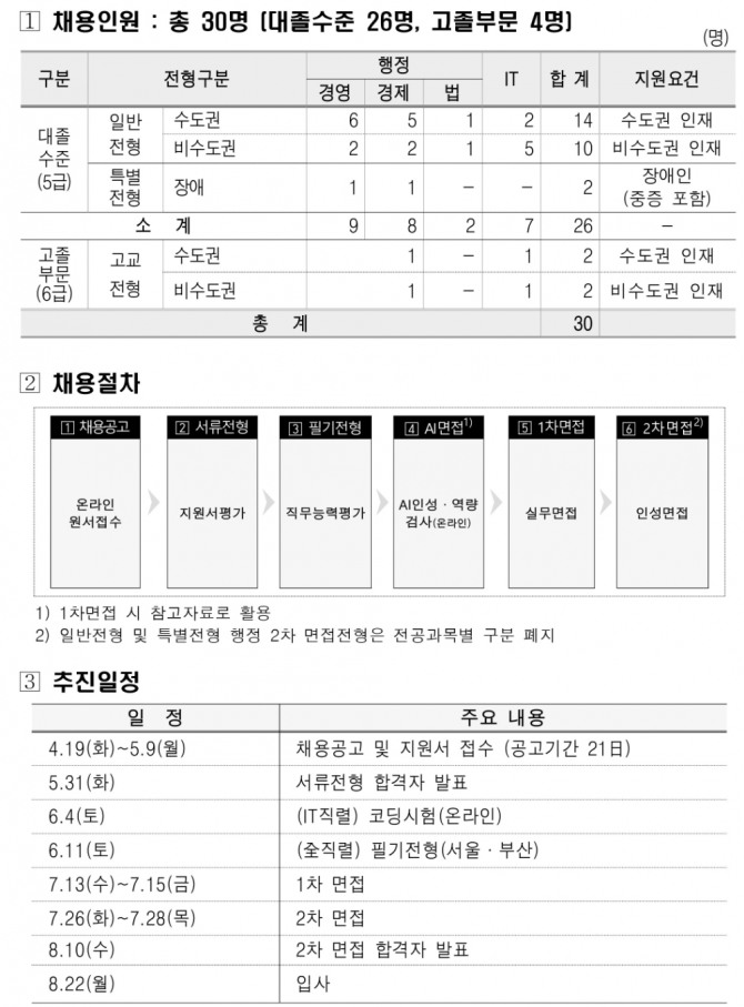 5월9일까지 원서접수, IT직렬·고졸부문 채용 확대
