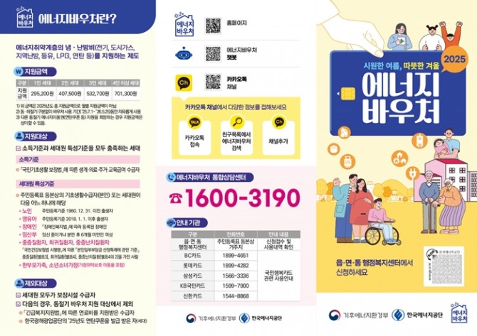 이미지 확대보기'에너지바우처'는 기초생활수급 가구 중 노인, 장애인, 영유아 등의 기후 민감계층에게 도시가스, 전기 등 에너지 비용의 일부를 지원하는 사업이다.