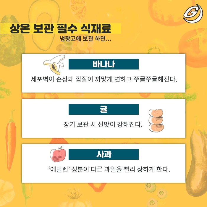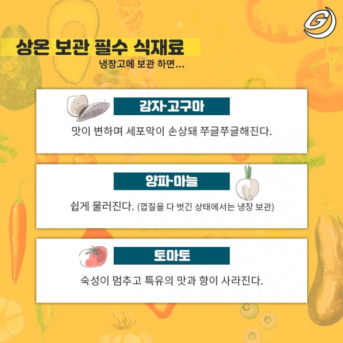 간과하게 되는 식품별 보관법. 장 봐온 식재료들을 무조건 냉장고에 보관하는 것이 능사는 아니다.