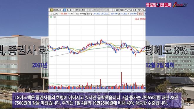 LG이노텍은 증권사들의 호평이 이어지고 있지만 급락했습니다. 2일 종가는 2만6500원 내린 28만7500원에 장을 마쳤습니다. 주가는 1월 4일의 19만2500원에 비해 49% 상승한 수준입니다.