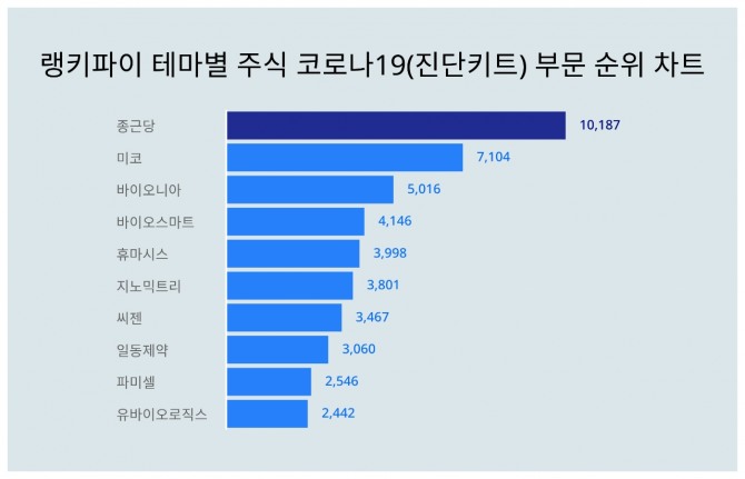 코로나진단키트 관련주 트렌드지수 분석해보니...종근당 1위, 미코 2위