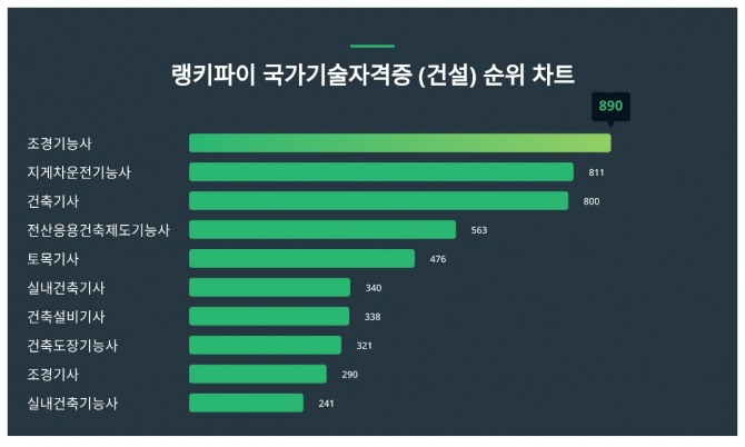 랭키파이는 국가기술자격증 (건설) 트렌드지수를 1일 발표했다.