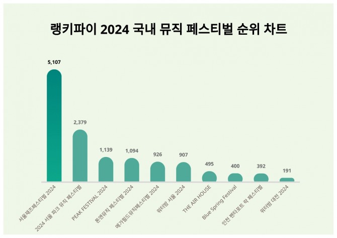 이미지 확대보기랭키파이는 31일 국내 뮤직 페스티벌 트렌드 지수 순위를 공개했다.