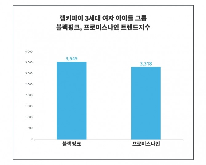 랭키파이는 6월 3주차 3세대 여자 아이돌 그룹 트렌드에서 블랙핑크가 1위에 올랐다고 17일 밝혔다. 이어지는 2위는 프로미스나인이 차지했다.