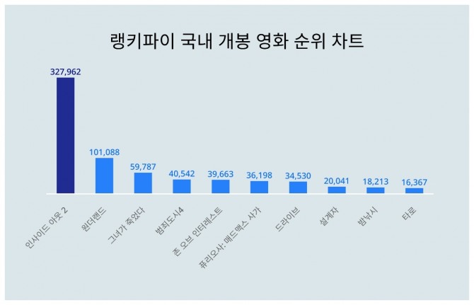 랭키파이는 21일 6월 3주차 국내 개봉 영화 트렌드지수에 대해 랭키파이가 분석한 결과 인사이드 아웃 2가 관련 부문 중 1위를 차지했다고 밝혔다.