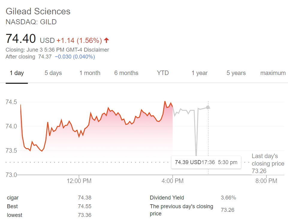 길리어드 사이언스는 코로나19 항바이러스 치료제 ‘렘데시비르’에 대해 미국 식품의약국(FDA)에서 긴급 사용허가(EUA)를 받아 주가가 연초 대비 18% 뛰었다.
