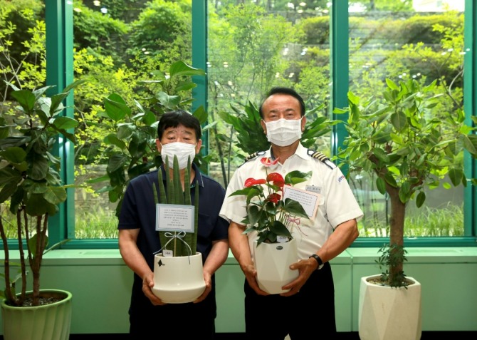 이정희 사장은 동작구로부터 추천받은 지역 내 화훼업체를 통해 화분 43세트를 구입해, 사내 환경미화와 경비업무를담당하는 협력업체 직원들에게 감사의 마음을 담아 전달했다.