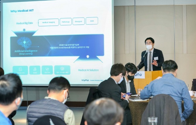 이미지 확대보기뷰노는 지난 8일 서울 여의도 63스퀘어에서 기업공개(IPO) 간담회를 열고 국내외 의료 AI 선도기업으로서의 연구개발(R&D) 성과와 코스닥 상장에 따른 전략과 비전을 발표했다.