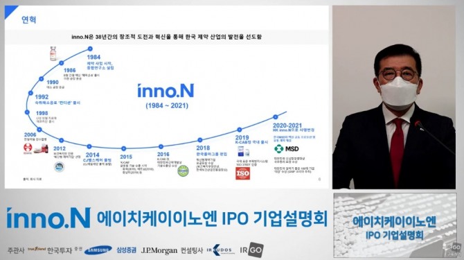 inno.N은 1984년 CJ제일제당 제약사업부로 시작해 2014년 CJ헬스케어로 출범했다. 이후 2018년 한국콜마그룹에 편입돼 지난해 첨단 바이오, 헬스케어 혁신 성장을 목표로 사명을 inno.N으로 변경했다.