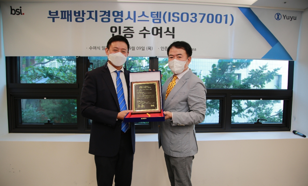 이미지 확대보기유유제약은 글로벌 수준의 부패방지 경영시스템 구축을 완료해 BSI(영국왕립표준협회)로부터 ISO 37001 인증을 획득했다고 9일 밝혔다.